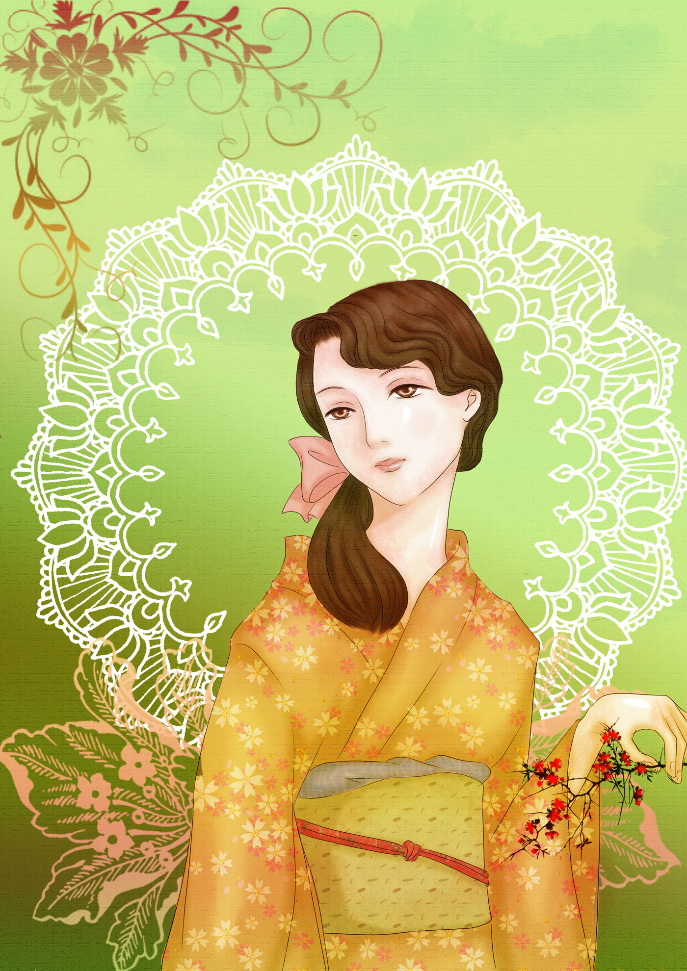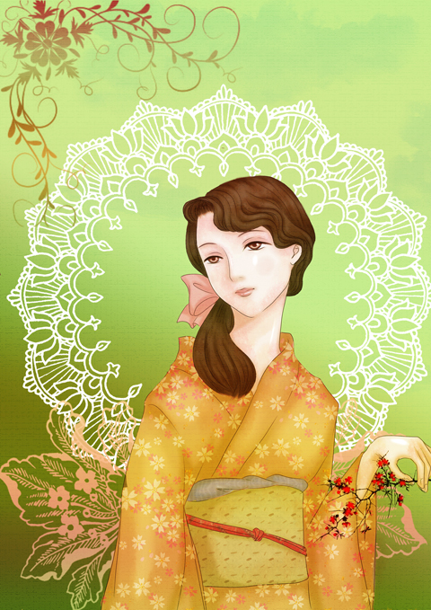 「日本の夏」の前に作成した大正ロマン風のレトロ浴衣イラ